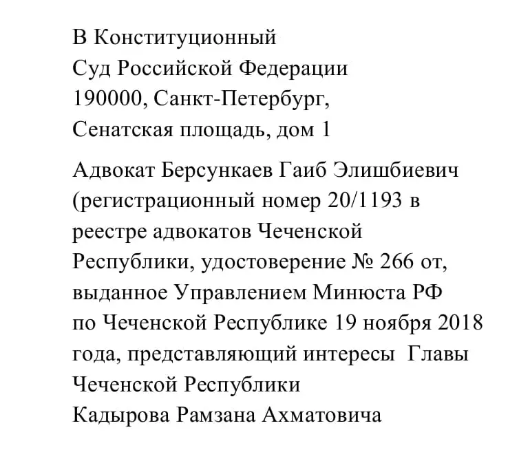 Письменная позицияпо делу по запросу Главы Республики Ингушетия...
